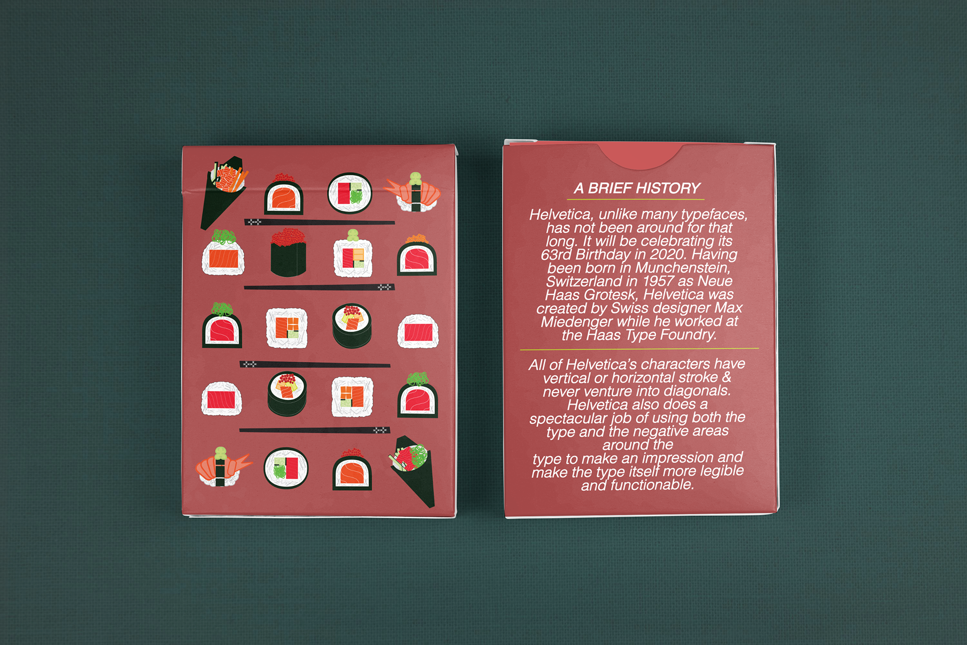 The focus on HELVETICARDS - Sushi Edition was to showcase the unique diversity of Helvetica.